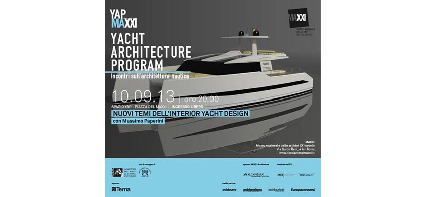 Settembre 2013. Massimo Paperini concluderà martedì 10 settembre alle ore 20 al MAXXI il ciclo di incontri di "Yacht Architecture Program": gli appuntamenti per scoprire i segreti del design nautico insieme ai protagonisti internazionali del settore.