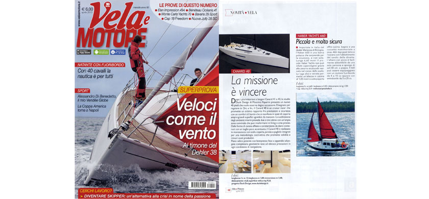 Aprile 2013. Il nuovo Canard 40' di Canard Yachts, firmato Duck Design sull'ultimo numero di Vela e Motore.